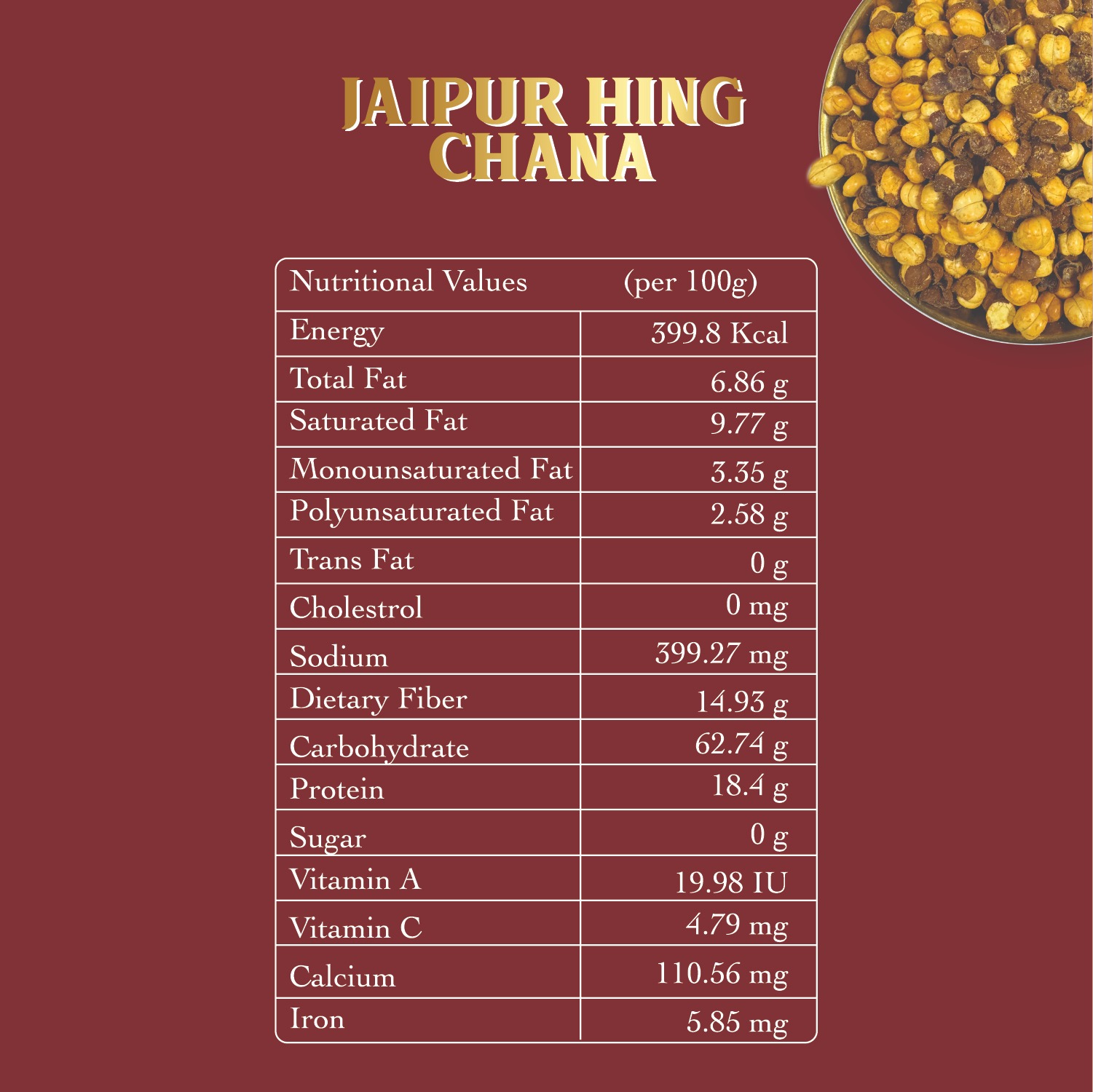 Jaipur doesn’t hold back on aroma, and this Hing Chana proves it in the first bite. Roasted black chana dusted with real hing and a blend of warm Rajasthani spices — bold, fragrant, and unmistakably Jaipur.