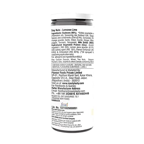 • UNIQUE FLAVOUR: Soya Nuts Lemonee Lime with coriander dry mango powder garlic onion cumin ginger black pepper turmeric lemon juice powder