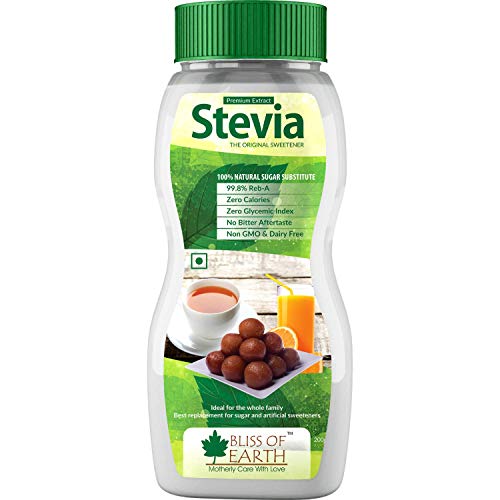 • HEALTHY ALTERNATIVE TO SUGAR WITH HIGHEST PURITY: Bliss of Earth Stevia Powder is 99.8% pure & can sweeten your day without harming your health. You can use it to sweeten your drink & desserts without adding that Extra Calorie to your meals. What's more b