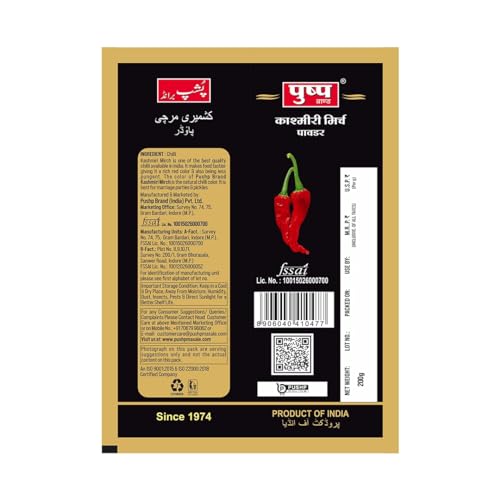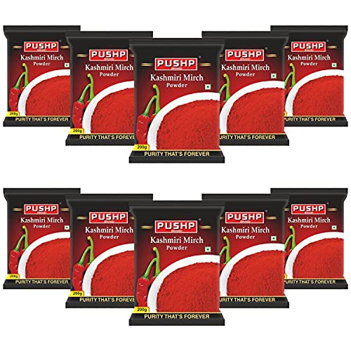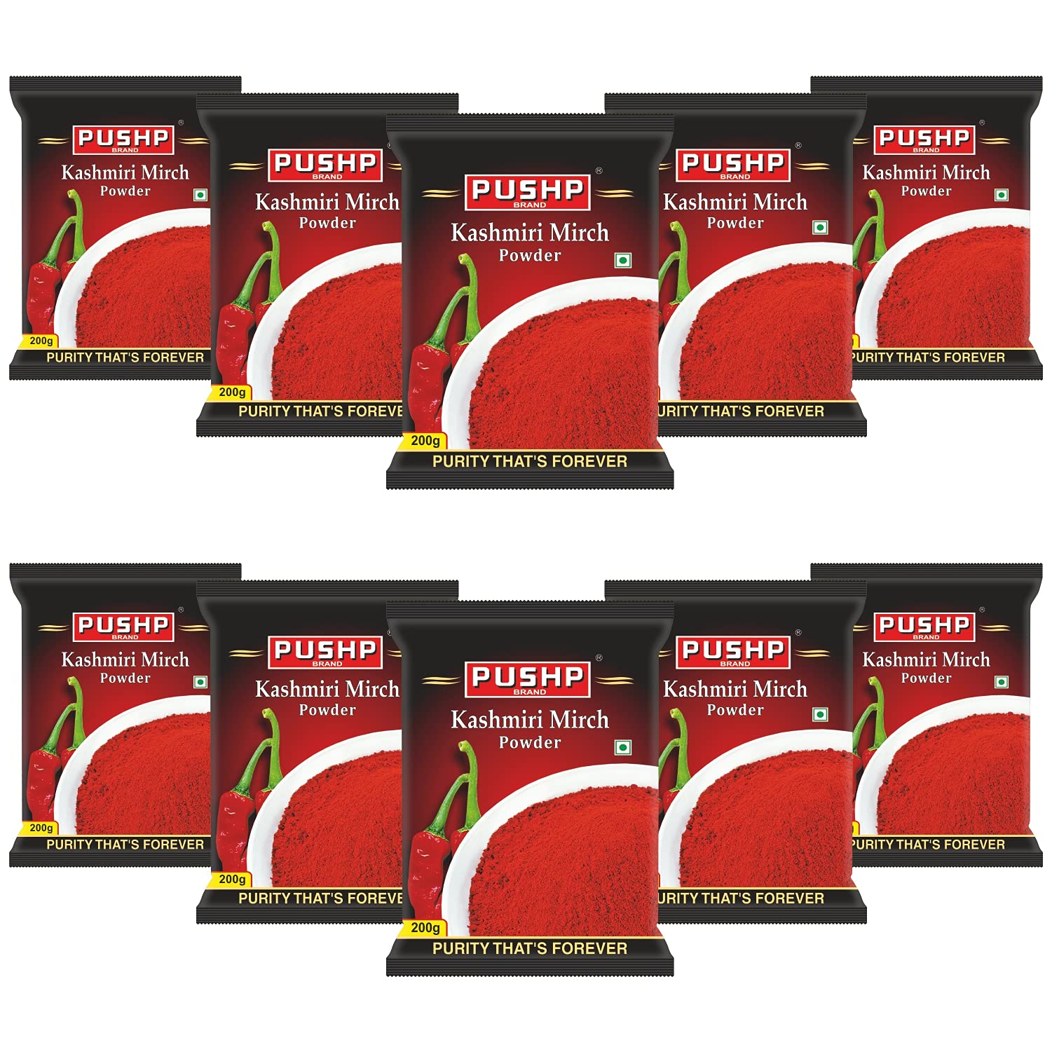 Pushp Brand Kasmiri Red Chilli Powder Pouch(Pouch Pack of 10 200gm in each pack)
