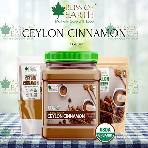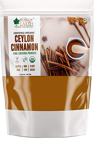 Bliss of Earth Certified Organic Ceylon Cinnamon Powder is a purer and healthier version of cinnamon. Ceylon cinnamon has a sweeter & delicate flavor than the more common Cassia cinnamon.In addition to its positive medicinal benefits ceylon cinnamon is ideal for all culinary usage.Our Ceylon Cinnamon is organically grown harvested and manually processed using traditional methods that have been used for centuries.Ceylon cinnamon known as true cinnamon is the purest form of cinnamon. Most commercial cinnamon is of the Cassia variety which has much less flavor or nutritional benefit since it contains much higher levels of coumarin. Ceylon cinnamon also has a more pleasant fragrance than the harsh pungent Cassia cinnamon. Use our pure cinnamon in your recipes and taste the difference.