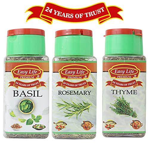This combo is for someone who loves herbs in the food. Easy Life Basil is a native to India cultivated here for more than 5000 years. It is a powerful herb with a slightly sweet fragrant aroma and delightful taste. It complements tomatoes vegetables soups eggs fish cheese lamb pizza and pasta. easy life Rosemary herb is native of Mediterranean region and Asia but can be grown in cool climates also. This piney-scented herb imparts sweet savoury notes to your favourite dishes. It is used in soups sauces stews roasts and stuffing. easy life Thyme has a heady and aromatic flavour. It's complementary for vegetables like tomatoes and roasted potatoes and also used with roasted grilled meats and fishes. All three herbs have anti fungal and anti bacterial properties. Easy Life has been in the market for over 24 years and we have tied up with many major offline retail majors. It is our constant endeavor to offer the widest possible range to consumer and now have an ever expanding range of selections across sauces spices seasonings power packed seeds and herbs. We maintain great taste and assured uniform quality and our products shall surely be your favorites brand soon after your first purchase. Happy cooking!! :)