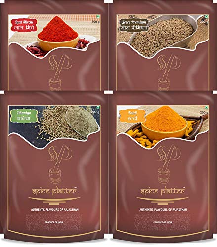 Spice Platter Daily Use Spices Combo || Pack of 4 || 200g Red Chilli Powder || 200g Dhaniya || 200g Haldi || 200g Jeera Premium