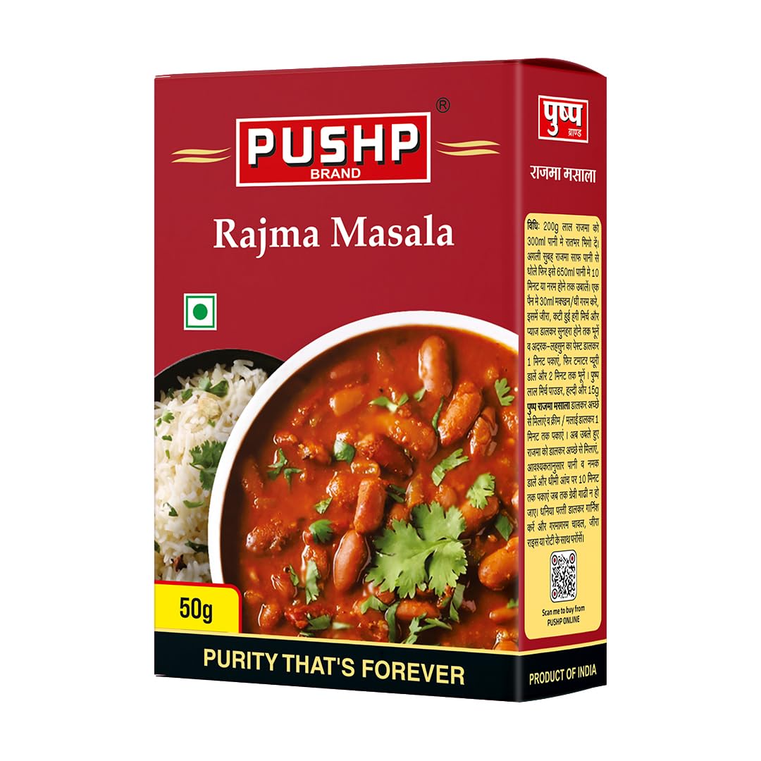 Turn your everyday rajma into a restaurant-style delight with Pushp Rajma Masala. Expertly crafted from a blend of over 25 hand-picked spices this masala elevates the humble kidney bean curry into a richly aromatic and flavorful experience. Whether you're cooking for your family or entertaining guests this 50g pack delivers the perfect balance of taste and tradition without any artificial additives. Ideal for North Indian rajma curry preparations it blends seamlessly with your ingredients to offer a wholesome and satisfying taste.