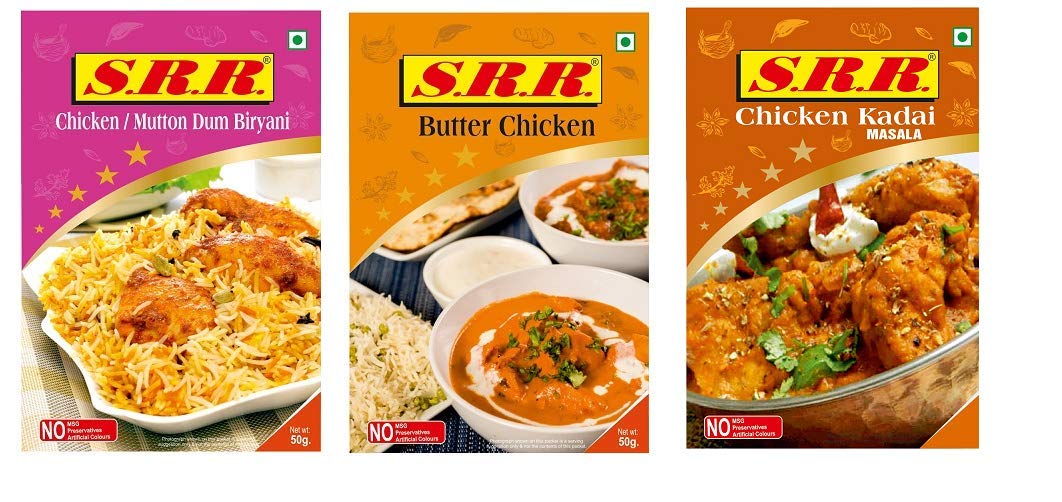 S.R.R Chicken /Mutton Dum Biryani Masala Chicken Butter Chicken And Chicken Kadhai Masala Powder Pack Of 3 50Grams Each