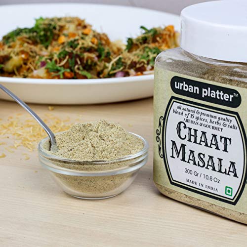chaat masala 300g [all natural and blend of 15 spices herbs and salts] chaat masala literally means 'tangy spice'. It is tangy blend of 15 spices herbs and salts. Contains amchoor iodized salt black salt pomegranate seed powder cumin ginger black pepper coriander seeds chilly ajwain kachini nutmeg cloves hing and mint leaf powder. This savoury spice blend is frequently used in indian cuisine as a finishing sprinkle over chaats parathas salads raitas fruits and even some beverages. Made of everyday spices combined smartly with pungent ingredients like black salt and amchur powder. Our chaat masala has a strong aroma which draws one to any dish it is ed to. Not only is this a great flavour enhancer this is an excellent and appetite ing blend. - simply good food