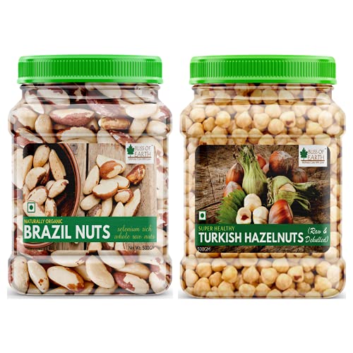 Bliss Of Earth Combo of Healthy Brazil Nuts Selenium Rich Super Nut and Turkish Hazelnuts Raw & Dehulled Healthy & Tasty (Pack of 2x500gm)