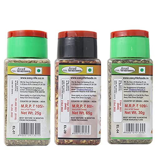 Easy Life Oregano is a herb native to southwest Eurasia and the Mediterranean region. It has a warm and aromatic flavour and is an integral part of Italian Turkish Greek and other Mediterranean cuisine. It adds zest and flavour to parathas sauces lamb broccoli cauliflower zucchini. Oregano is an excellent antioxidant and also a rich source of vitamins and nutrients.Pizza's are incomplete without this herb.Easy Life Chilli Flakes are native of Central America South America and Carribean Islands. It has a warm fiery and tingling hot flavor used more often in Mexican and American cuisines. It can be used in pizza french fries pastas sandwiches and more. It is used to improve digestion and is an antioxidant. Easy Life Italian seasoning is a blend of ground herbs that commonly includes basil oregano rosemary thyme garlic powder sage or coriander.Easy Life believes that our reputation has to be based on the quality of our products. We have handpicked the finest quality products. Easy Life has been in the market for over 24 years and we have tied up with many major offline retail chains. It is our constant endeavor to offer the widest possible range to consumer and we have an ever expanding range of selections across sauces spices seasonings healthy seeds and herbs. We maintain great taste and assured uniform quality and our products shall surely be your favorite brand soon after your first purchase. Happy cooking!! :)