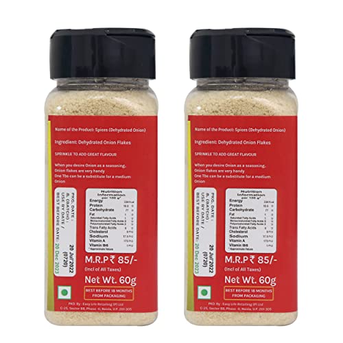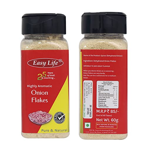 HomeGrocerySpicesWhole SpicesDry FlakesEasy Life Onion Flakes 60g [Pack of Only 2 Spices Dry Powdered use in Rice Bread - Combine with Garlic or Ginger and Make Your own Seasoning]