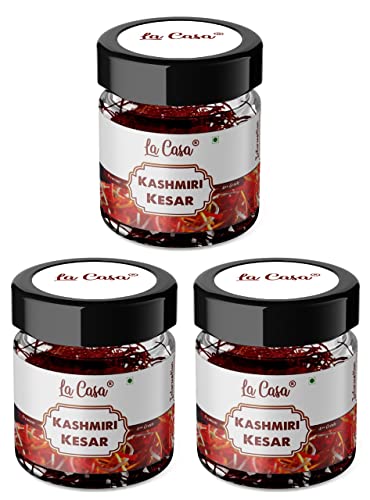La Casa Pure & Organic Mongra Saffron | Combo of 3 | Kumkuma Puvvu | Finest A++ Grade Kashmiri Kesar | Keshar/Saffron Threads | 0.25gx3 |