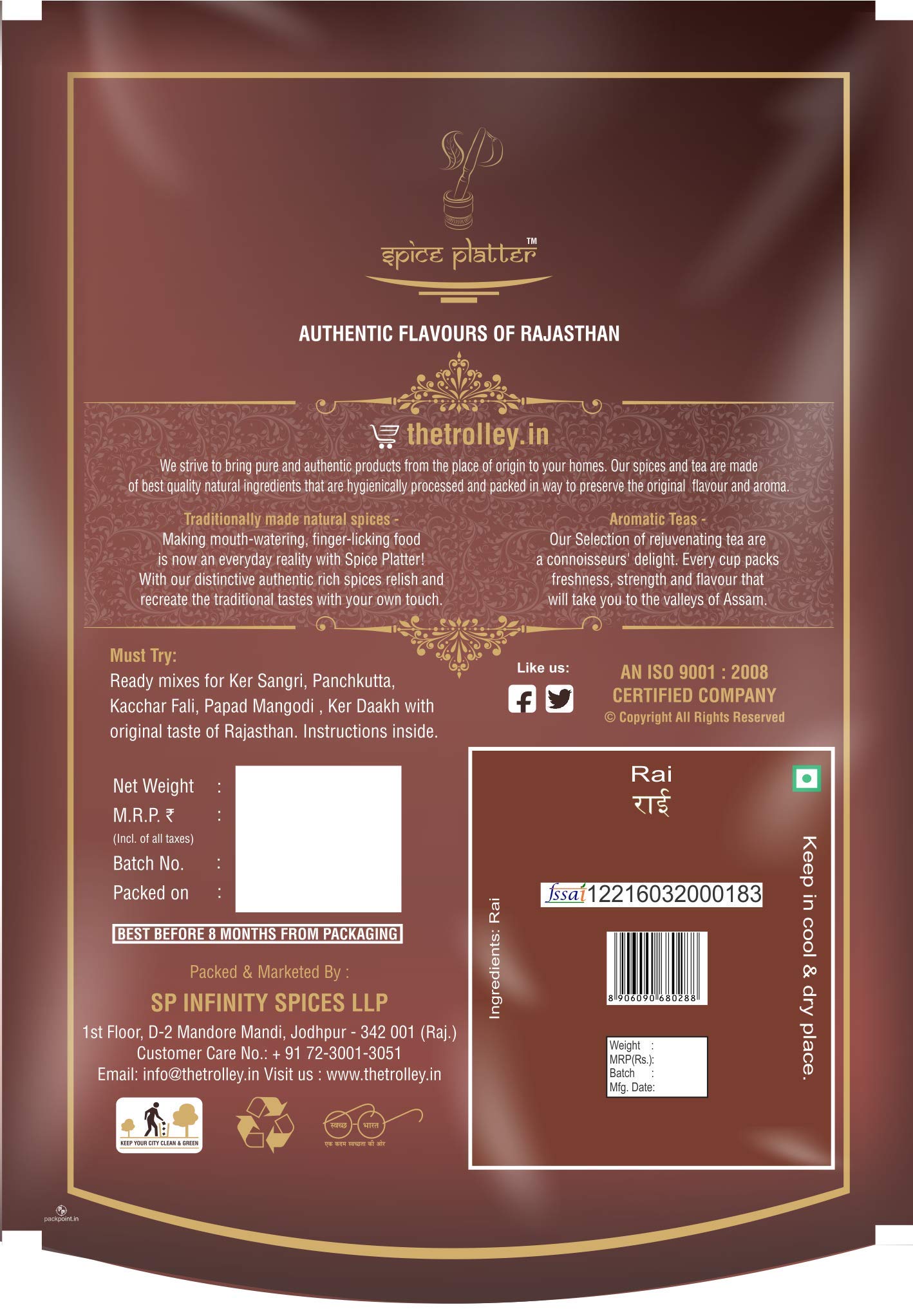 Mustard seeds are commonly known as "sarson" Or "rai" In India. They are small rounded seeds about 1 or 2 mm in diameter and are of brown in colour mustard seeds can be of three different colours black mustard brown Indian mustard and white mustard depending upon the type of plant it comes from. Mustard seeds have a sharp pungent flavour. Mustard seeds are used as spices and condiments in various cuisines in India Mediterranean caribbean northern Europe north America and Africa. In India rai seeds are used for seasoning in almost all Indian vegetable dishes; either curry or dry masala recipes. Mustard seeds are also the main ingredients of almost all pickles. Mustard seeds are also used as an ingredient in salad dressings glazes sauces soups and marinades as a cream paste or a whole seed. Whole ground cracked or bruises rai are mixed with water vinegar or other liquids and sometimes other flavourings and spices to create a thick paste commonly paired with meats and cheese.