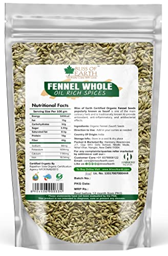 Bliss of Earth USDA Organic Fennel Seed Whole.
