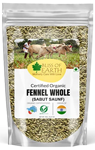 Bliss of Earth Certified Organic Fennel seed (Saunf) Indian Spice Fresh & Sweet Great for manages weight | digestive health or Cooking (1kg)