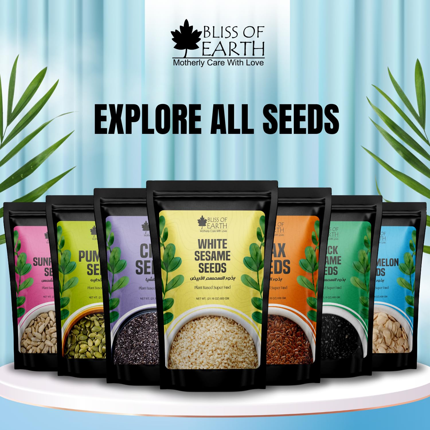 Bliss of Earth Organic White Sesame seeds are dehulled and are excellent source of copper calcium omega fatty acids iron magnesium phosphorus zinc and selenium. Sesame Seeds are also a good source of fiber with a rich nutty flavour. Called the queen of oil seeds these tiny seeds are a go-to topping on breadsticks and burger buns. Ingredients: Organic Sesame Seeds