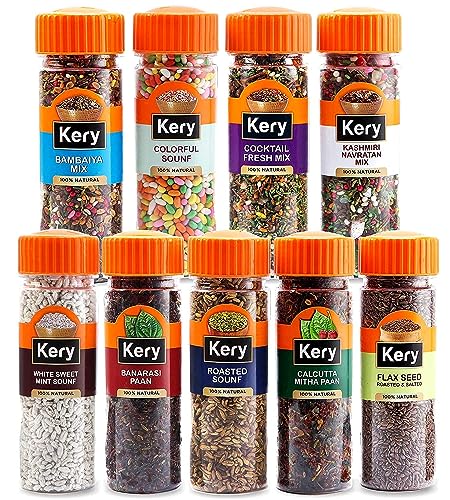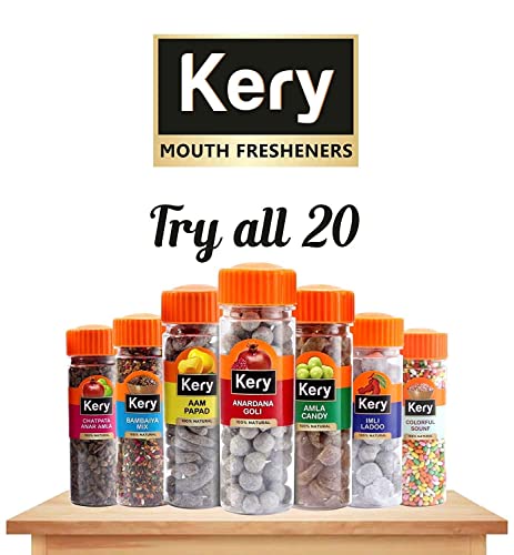100% Natural & Authentic Indian Taste Premium Packaging comes in a handy air tight jar bottle pack so the flavors & variety don't escape easily. Prepared processed and packed in a very hygienic condition to ensure better quality and authentic flavour. Our Mukhwas Set is infused with the goodness of fruits organic herbs and ingredients which are proven to be beneficial for health & digestion.This Indian after-meal snack is used for digestion widely used as a mouth freshener especially after meals.At Kery we produce only the best and so the dry ingredients used to make our are sourced exclusively from responsible farmers and producers. With the use of best industry practices we produce the highest quality snacks.Try all Pachak Ladoo Khajoor Aam Papad Jeeragoli White Sauf Banarasi Pan Anardana & Navratan Mukhvas.