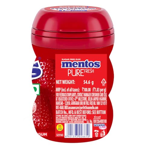 A hit of delicious freshness which excites the mouth and awakens the mind to new experiences new opportunities. When we choose Mentos we say yes to fresh. Yes to the unexpected. Yes to the unknown. Yes to the path less travelled. Mentos has been refreshing people all over the world for over 80 years. Its attractive shape combines taste freshness and functionality. Enjoy the strawberry fruity flavour of Mentos Pure Fresh Gum available in a stylish and convenient pack.