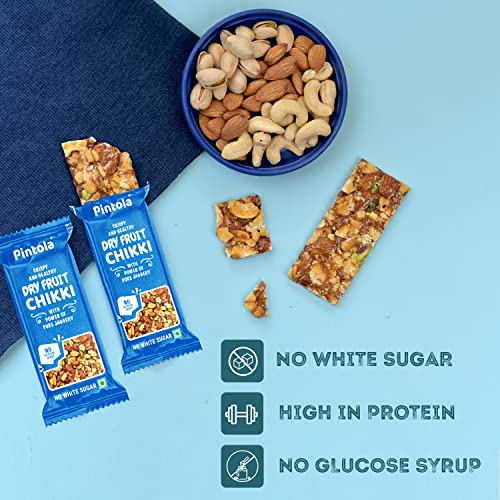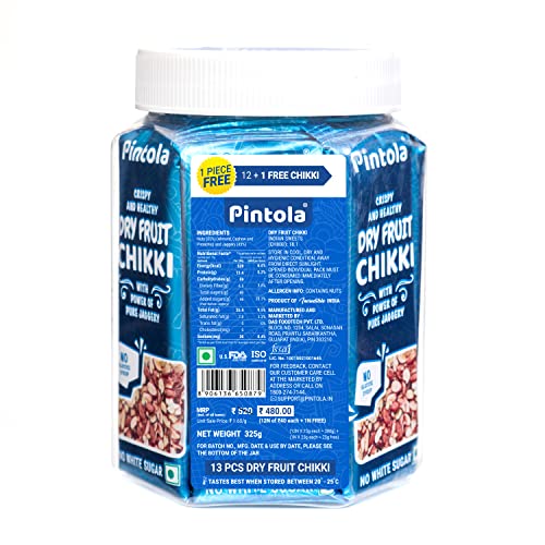 Pintola Dry Fruit Chikki Jar | Pack of 13 pcs (12+1 pcs Extra) | Dry Fruit BarMade with Jaggery | No Glucose Syrup | No Preservatives | Gluten Free | Indian Sweets | Gajak | (25g Each x 13N = 325g)