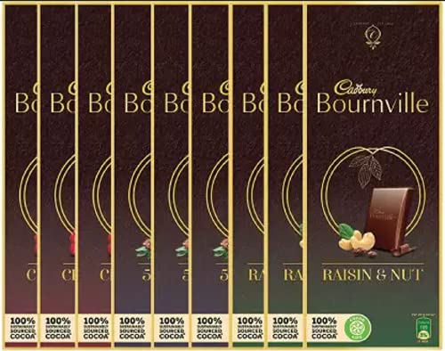 Cadbury Bournville 80 grams 50% Dark (3 Units) + Bournville Cranberry 80 grams (3 Units) + Bournville Raisin & Nut 80 grams (3 Units) Pack of 9 Bars (9 x 80 grams)