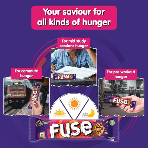 Cadbury Fuse is a crunchy chocolate feast that will satisfy and stimulate your taste buds with its rich taste filled with nuts & caramel. It has a creamy centre coated in smooth Cadbury milk chocolate. This chocolate bar is a perfect sweet to indulge in all alone or as a chocolate pack for gifting on special occasions like birthdays and get-togethers. Every bar of this crunchy chocolate is made from 100% sustainably sourced cocoa. It is suitable for vegetarians.
