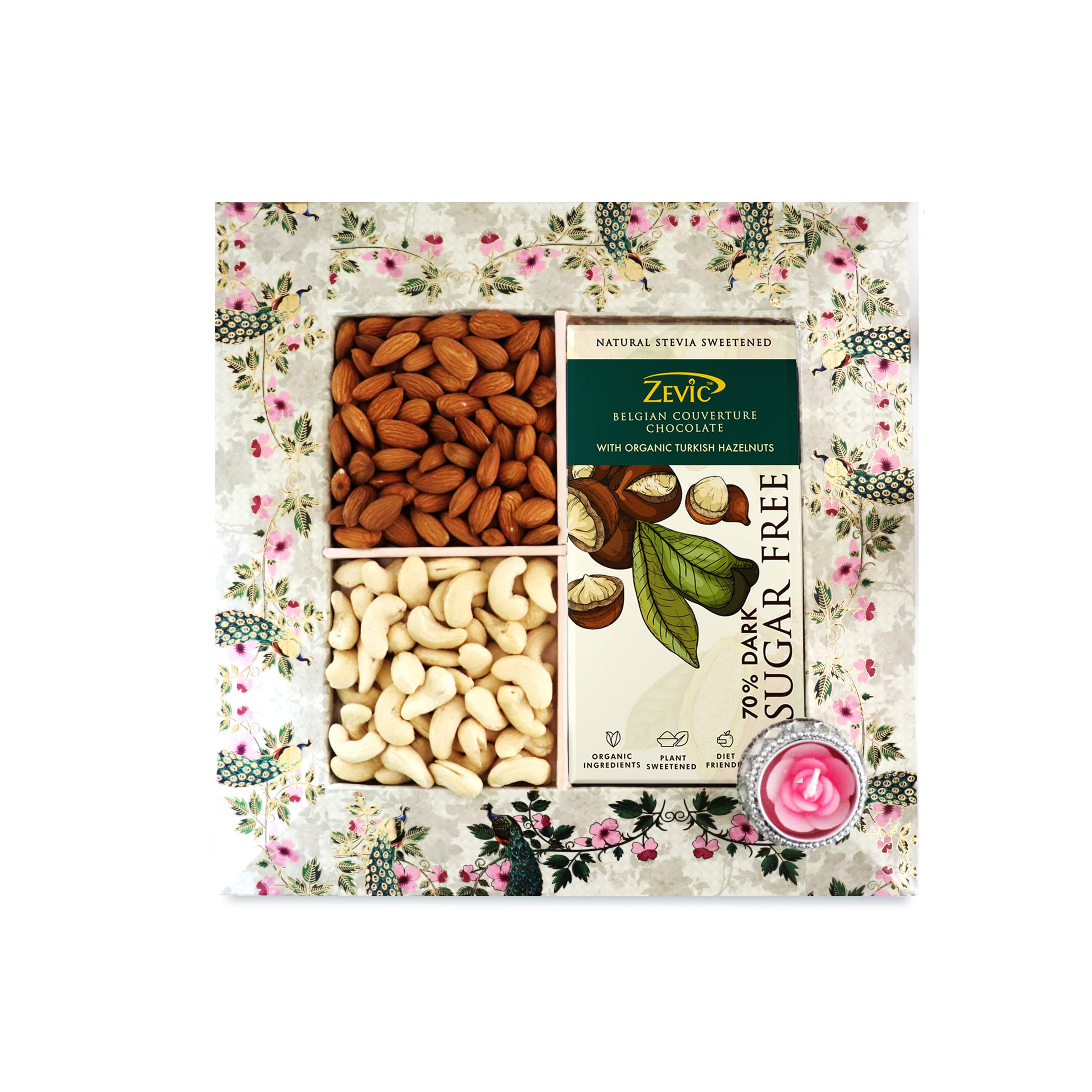 Lose yourself in this gorgeous blend of Belgian Couverture chocolate blissfully intertwined with the goodness of flavorful paan and aromatic roses. Experience a regal burst of flavors like never before. Sweetened with natural zero-calorie Stevia this guilt-free indulgence will leave you craving for more with every bite.