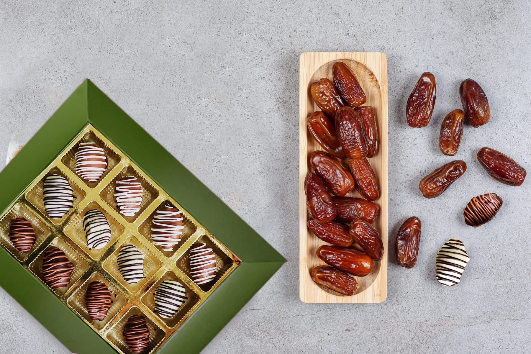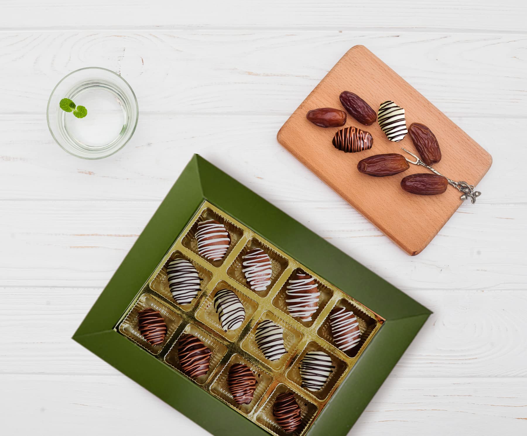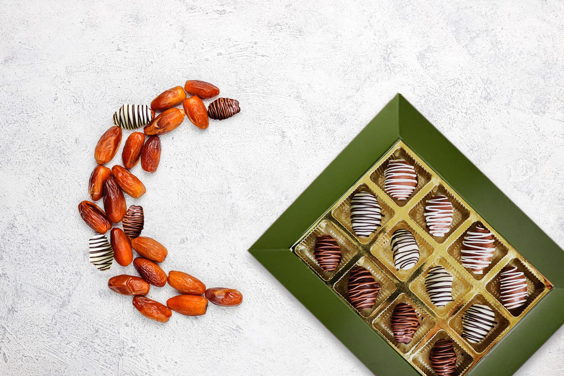 A tantalizing fusion of luscious 12 Omani dates covered with dripping Sugar free chocolate in four amazing flavors- Stuffed with Roasted Almonds Chocolate Krispies. A special treat for someone special.