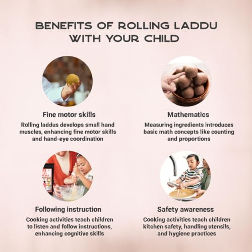 Made with love inspired by tradition! Tots & Moms Choco Jowar Laddu Mix brings back the magic of homemade laddoos with a healthy twist. Dates & jaggery sweeten naturally while jowar & nuts fuel little bodies & minds. DIY your way to family fun one delicious bite at a time! Skip boring snacks grab a handful of happiness and rediscover homemade joy!