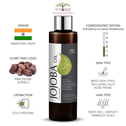 â Balances Oil Productionâ Readily Absorbed â Hair Revitalizerâ Sebum Likeâ Suits Most Skin & Hair Typesâ Make-up Removerâ Natural Lip Balm PURITY PROMISE: We work very hard to source our oils directly from farms that have their own distilleries and use ethical growing & distillation practices. This ensures aroma and medical properties are retained during distillation and not lost due to transit of raw materials from farms to factories. Each new variety is randomly tested for 3 months by perfumers aromatherapists massage/beauty practitioners random customers and in the lab for aroma quality & consistency before launch. We do not use any chemical fixatives to enhance the aroma or consistency of any of our product. Each oil is 100% pure & therapeutic grade. BUY WITH CONFIDENCE. If you still don't find any of our products up to mark please let us know through a personal message and we will be happy to assist you and resolve your concern at the earliest.