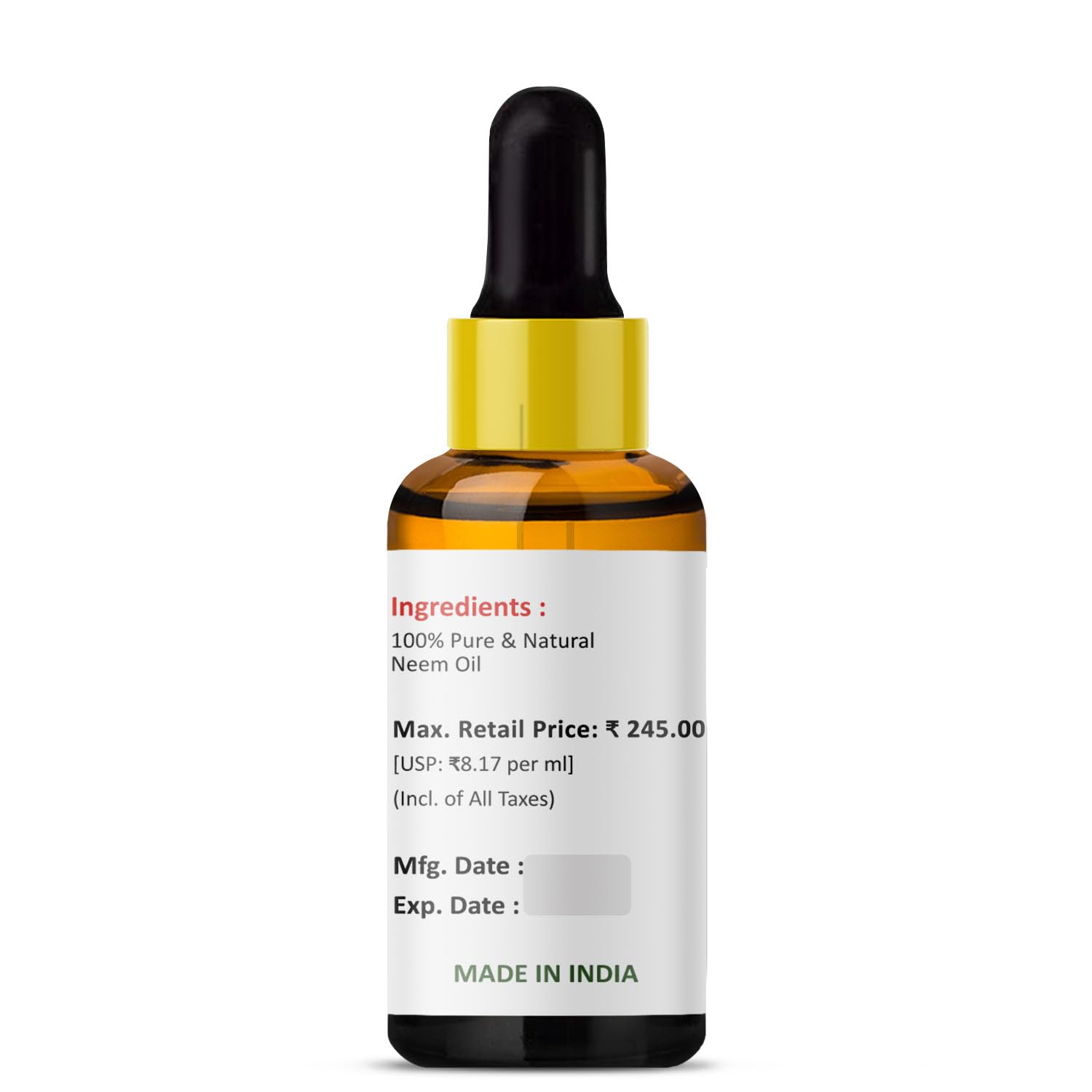 Method of extraction:- cold pressed oil pure natural neem oil can lighten acne scars and other dark spots from our face. The oil is soothing and healing the high fatty-acid content in neem oil is said to prevent and treat scars from acne scars. Once it is dry wash It off with water. You must repeat this process at least twice a week to see best results. Overnight acne and pimple cure: when you feel an acne or pimple bump on your skin neem can act as a great overnight remedy. Refined cold pressed carrier oil - carefully processed via cold pressed method to retain delicate essential fatty acids and active ingredients to ensure better then the best therapeutic outcomes every batch tested for quality. Nutrient rich neem oil for hair skin & nails - treat acne fade fine lines heal stretch marks moisturize hair & scalp how to apply mix 5 drops or so each of neem oil and jojoba oil. Soak a cotton ball with the oil mixture then dab the gently on the face paying close attention to the areas affected by scars pimples and redness. Leave it on for 25 minutes then rinse your skin with water. Amazing benefits of neem oil: neem oil for skin skin treatment skincare face care body acne scars acne prone skin natural bug repellent dandruff treatment treat frizzy hair Hair growth protects skin and flight anti aging moisturizer skin. Certified as per haccp gmp and iso 9001 standards.