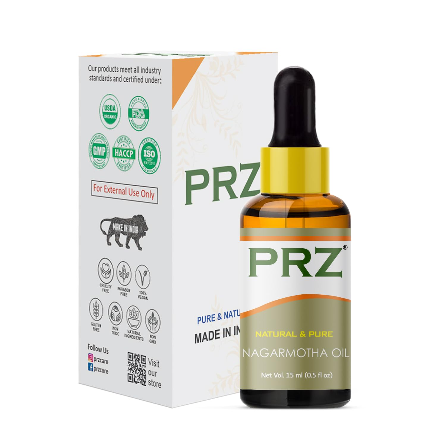 PRZ Nagarmotha Essential Oil - 100% Pure Natural & Undiluted Essential Oil for Skin & Hair (15ml)