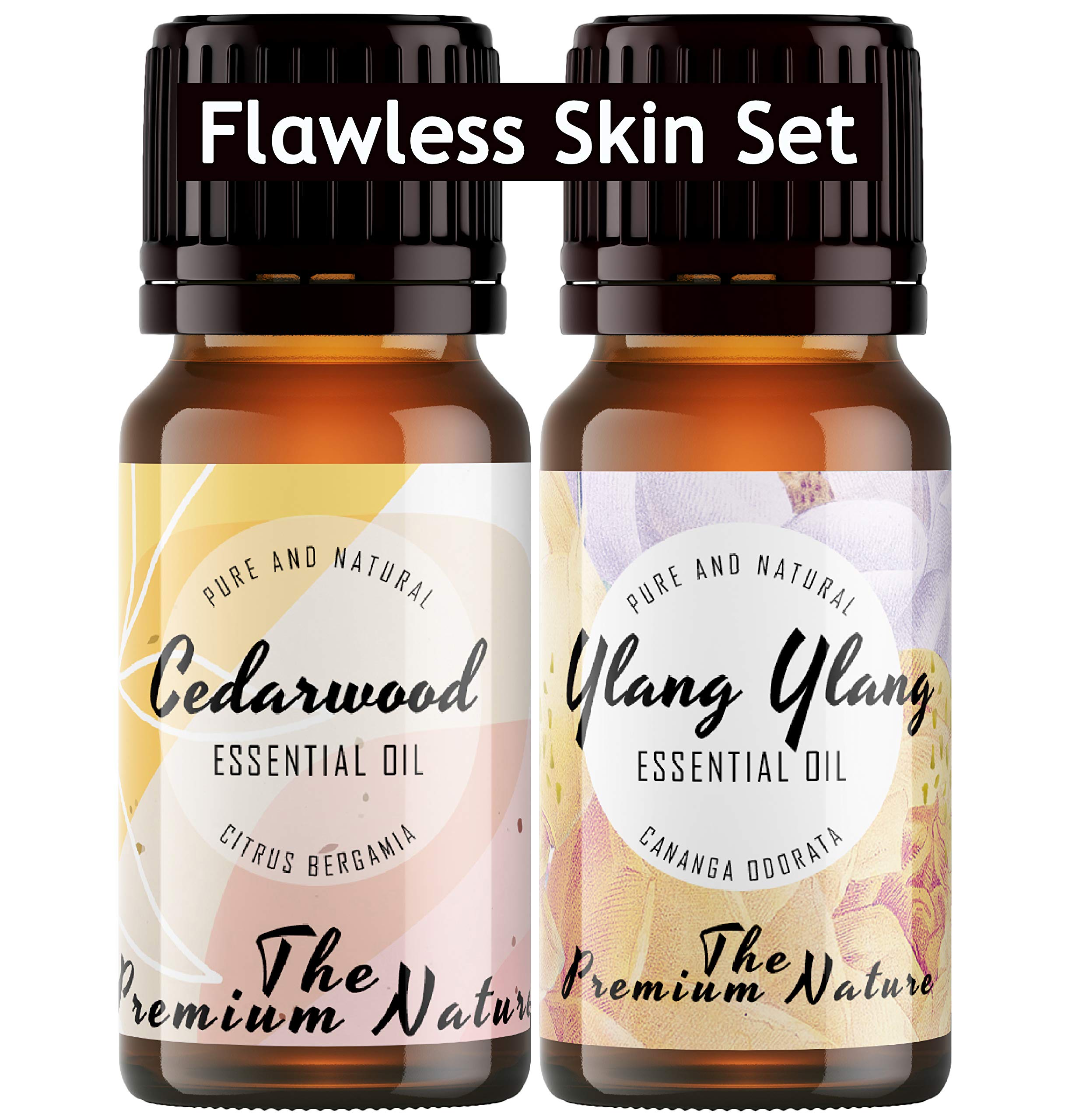The Premium Nature Cedarwood Oil & Ylang Ylang Oil - Flawless Skin Set to Moisturize & Restore Dry & Dull Skin - 100% Pure Therapeutic Grade Essential Oils Set - 2x10ml