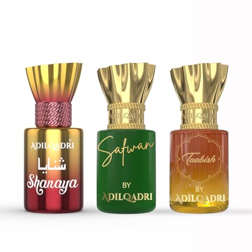 Adilqadri Shanaya Safwan & Taabish Attar Combo | Arabic & French Fusion, Fruity & Sweet Notes | Long-Lasting Non-Alcoholic Roll-On Attar for Men & Women | Gift for Him & Her | 3 x 5.5 ML
