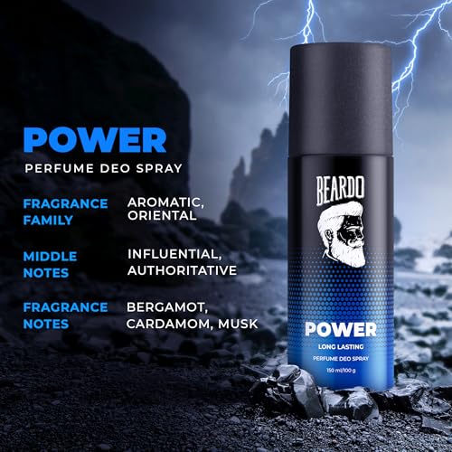 • Beardo POWER Deo Spray is crafted for the Truly Powerful men! This commanding fragrance ensures you exude an aura of undeniable power and leave a lasting impression wherever you go.