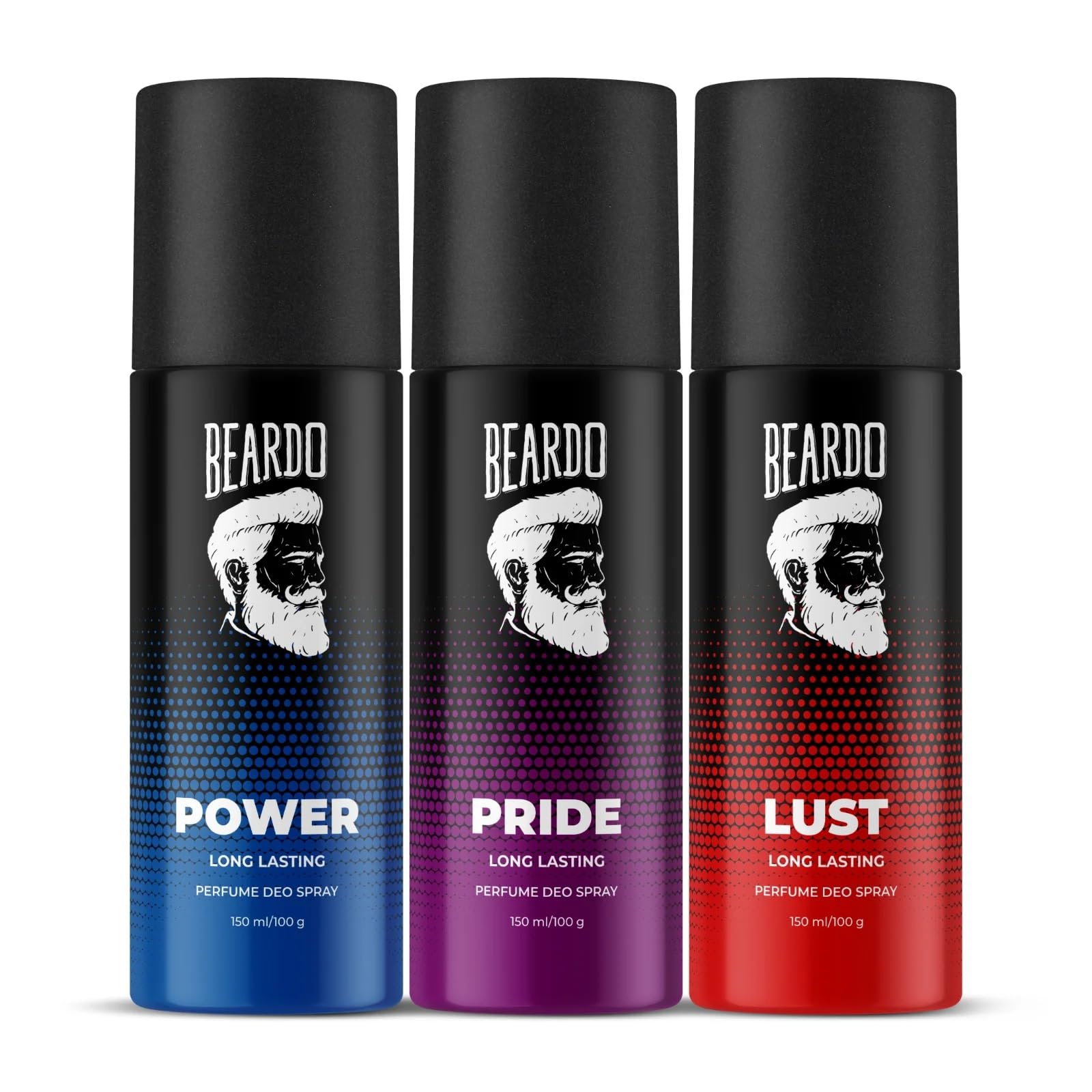 Beardo Power Lust & Pride Perfume Body Spray (Set of 3) Get compliments with Long lasting Fougere Aromatic Deodorant Brand | Gift For Brother | Gift For Friends