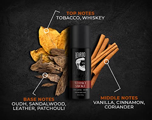 HomeHealth & PersonalAroma ProductsAttar/PerfumesBeardo Whisky Smoke & Bourbon Perfume Body Spray (Set of 2) Spicy, Woody Oudh Deo for Men Long Lasting |Date night Deodorant for Men | Fresh Scent | Valentines day gift for husband | Gift for boyfriend | Gift for Men