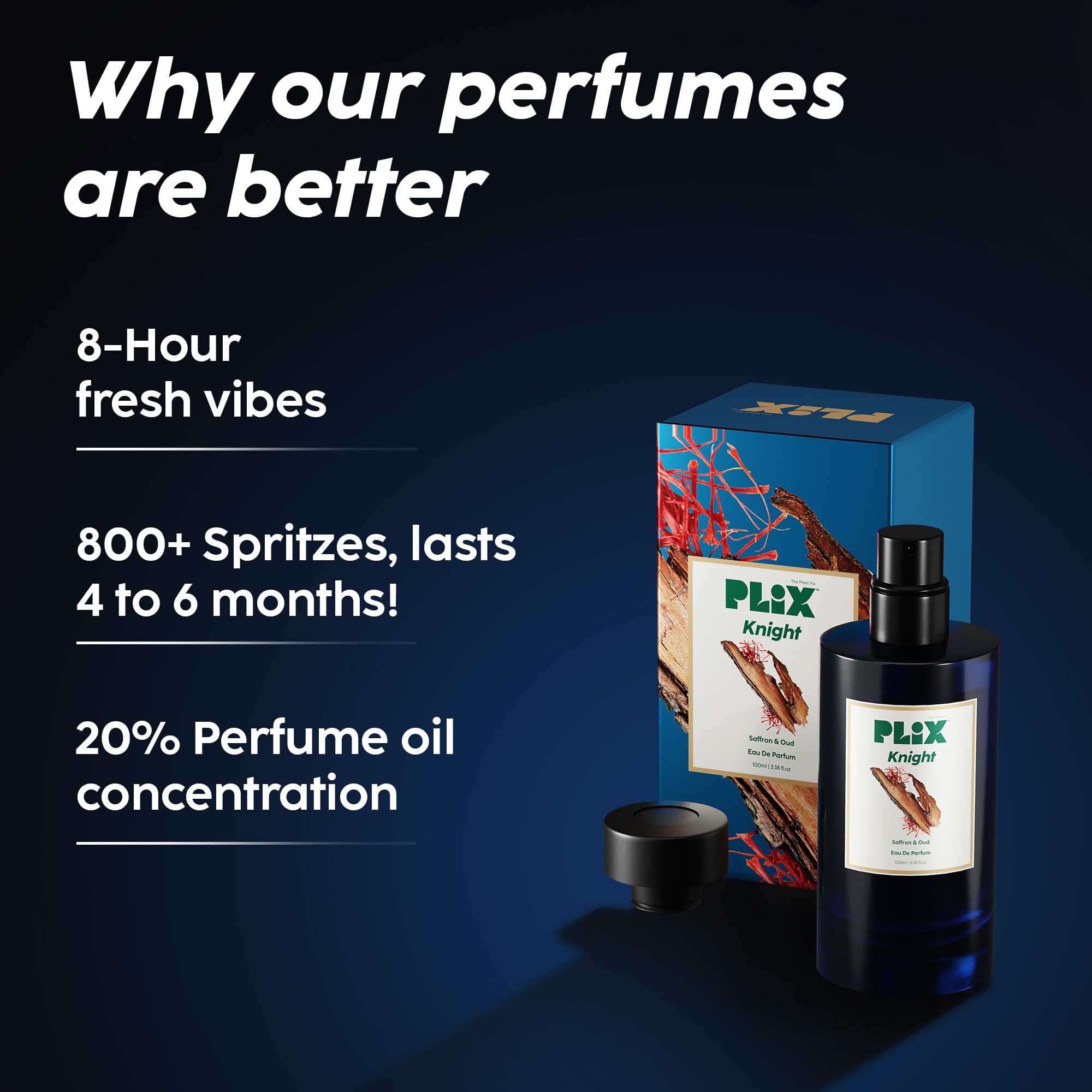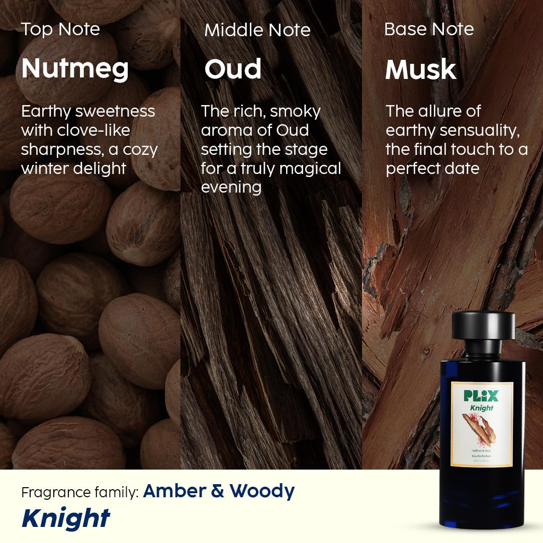 HomeHealth & PersonalAroma ProductsAttar/PerfumesPLIX - THE PLANT FIX Mood Range Knight Perfume For Date Night, Perfect For Date & Romantic Evening, Long Lasting Fresh Saffron & Oud Fragrance, 100 Ml - Aerosol For Unisex