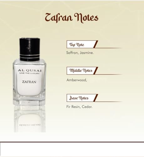 Al Qusai Purple Passion A purple concoction with fruity aromas create an enticingly sensual scent with a lingering sweetness. The top notes of berries and blossoming cherries entice you and the lily's centre notes give off a fresh floral aura. LIVE THE LUXURY with Al Qusai -Purple Passion a tantalizing scent which will craft a sophisticated aura around you and bring out your Passionate side. Al Qusai - Zafran Zafran is a divine unisex scent with saffron as top notes undertones and earthy tones of amberwood base notes include fir resin and cedar. Zafran which has a rejuvenating effect on the mind and body will create an aromatic atmosphere around you. making you stand out.LIVE THE LUXURY of Al Qusai's Zafran long-lasting_refreshing essence; you simply can't stay out of it!