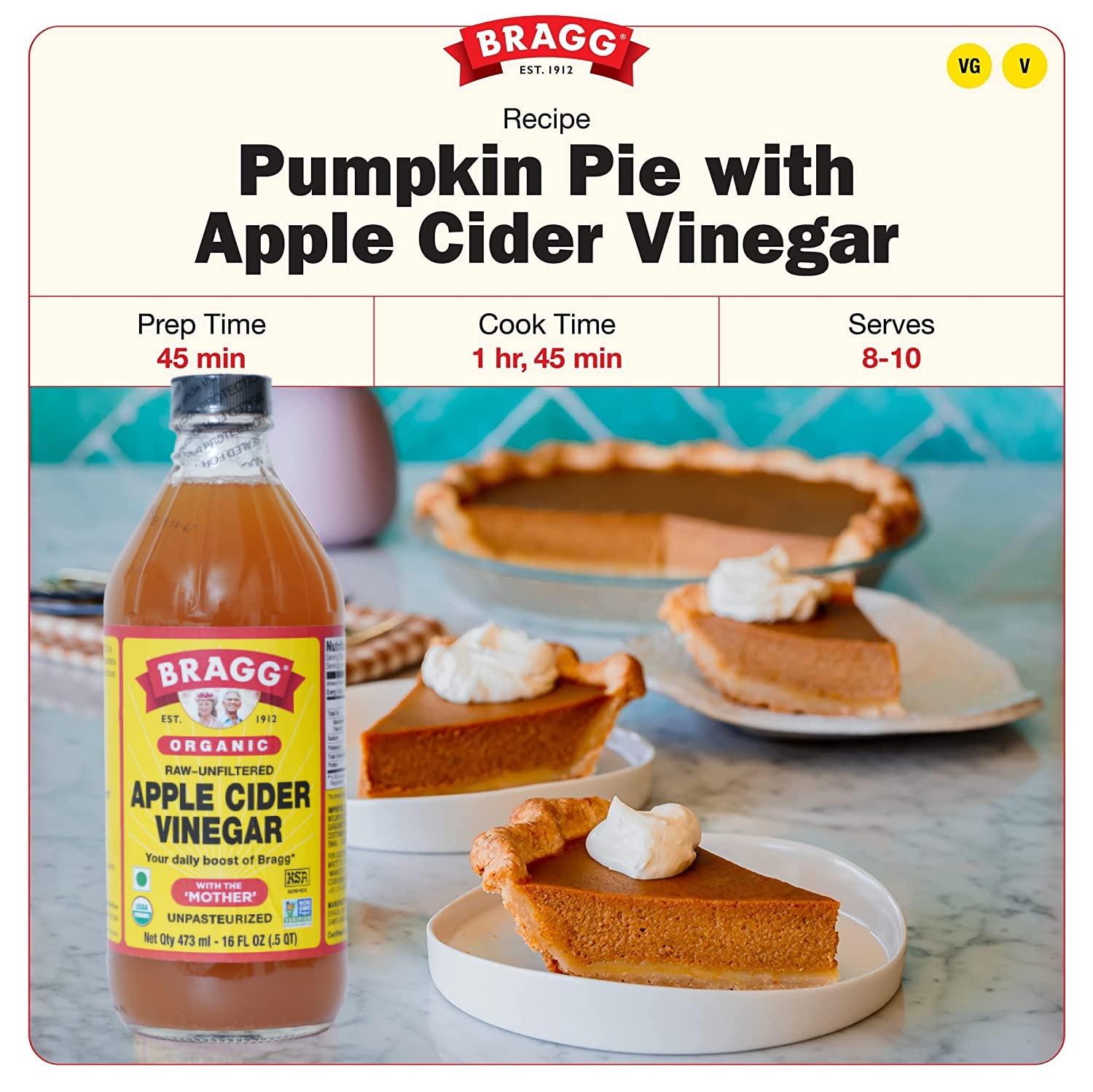 Bragg Organic Raw Apple Cider Vinegar is made from delicious healthy organically grown apples. Processed and bottled in accordance with USDA guidelines it is Certified Organic by Organic Certifiers and Oregon Tilth; and is Kosher Certified. Bragg Organic Raw Apple Cider Vinegar is full of zesty Apple Cider Vinegarnatural goodness. Non-GMO Certified. It's a wholesome way to delicious flavor to salads veggies most foods and even sprinkle over popcorn. Apple Cider Vinegar has been highly regarded throughout history. In 400 B.C. the great Hippocrates Father of used it for its amazing health qualities. No refrigeration required. Internal benefits: Rich in enzymes & potassium Support a healthy system & ph Balance Helps soothe dry throats Helps remove body sludge toxins. External benefits: Helps maintain healthy skin. Helps promote youthful healthy bodies. Soothes irritated skin. muscle from exercise.
