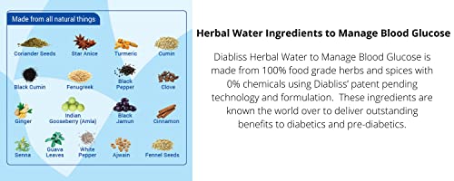 Diabliss Herbal Water for Blood Glucose Management for Diabetics! Clinically Tested No Side Effects Lowers HbA1c Lipids Fasting & Post Meal Blood Sugar Levels - Diabetes (1 Month Supply)