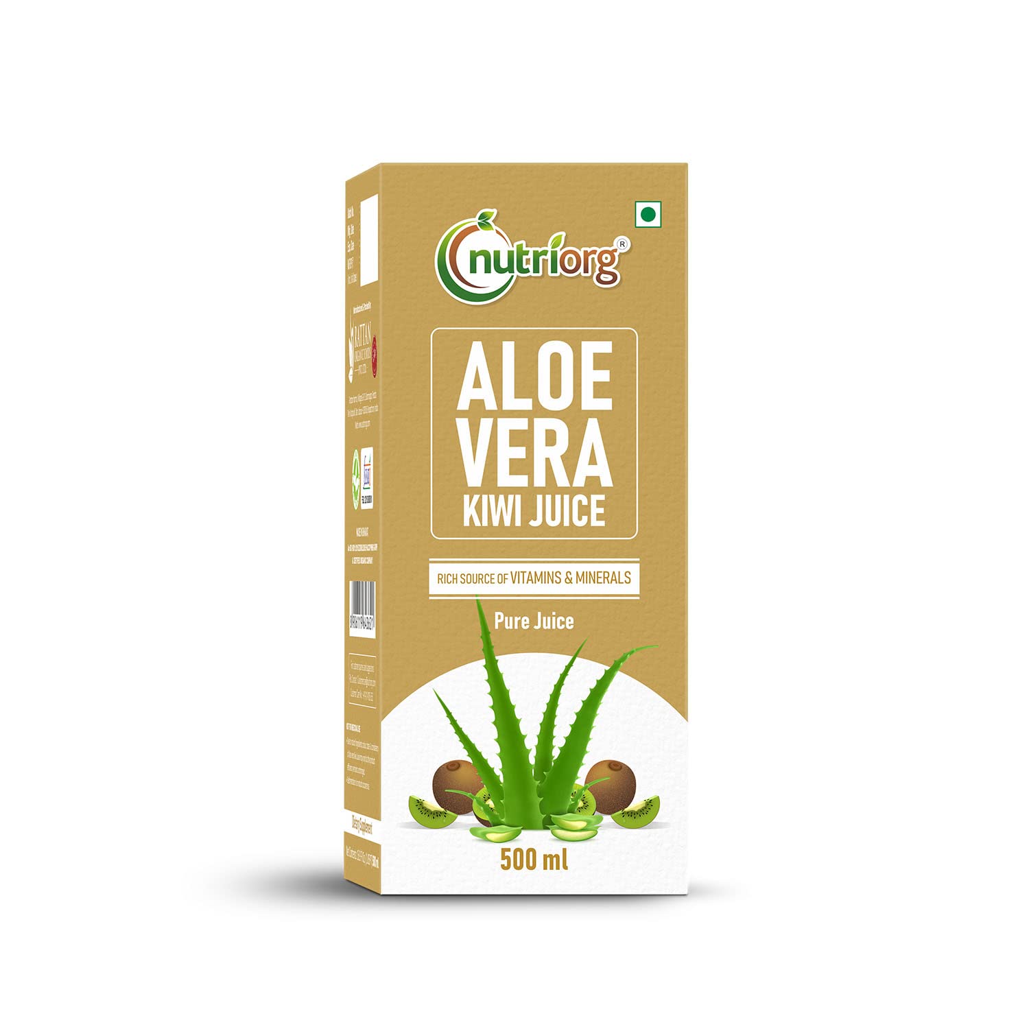 Nutriorg Aloevera with Kiwi Flavour 500 ml, Rejuvenates Skin and Hair, Natural Juice for Skin Care,No Added Sugar (1L)