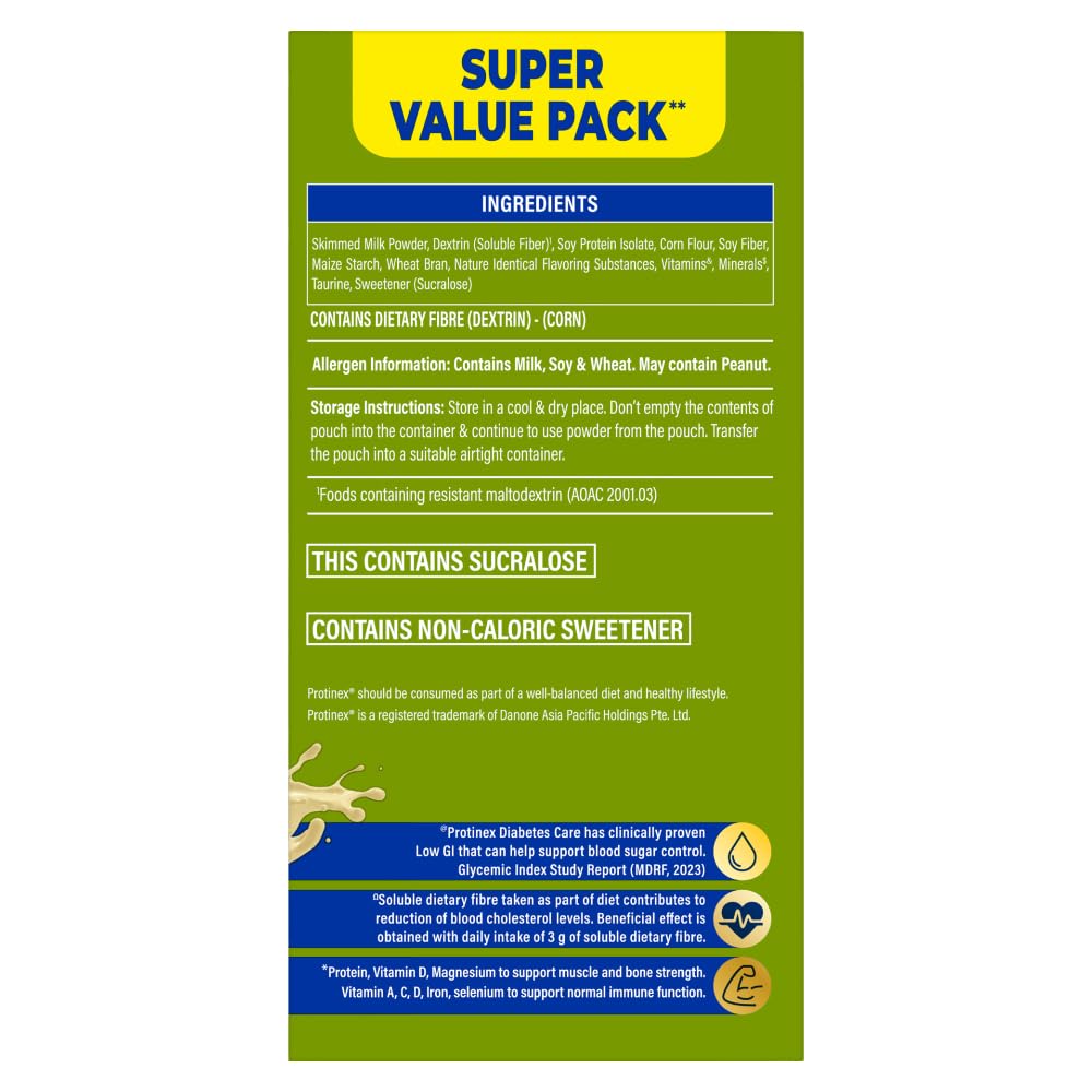 Protinex Diabetes Care is a vegetarian ready-to-serve nutritional formulation for people with Diabetes. It is a scientifically designed nutrition supplement with protein and high fiber. Protein and high fiber diets have shown to help blood sugar control and induce satiety. Protinex Diabetes Care is clinically proven to have Low GI. It also contains 30 essential nutrients including 11 immuno-nutrients that help support strength. Available in Vanilla Flavor it's a tasty drink with zero added sugar and low-fat content that makes it suitable for people with diabetes.