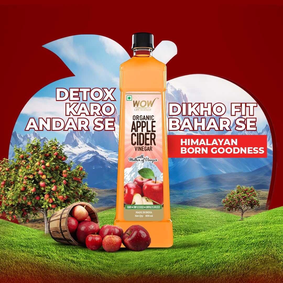 Made from fresh & organic Himalayan apples Wows apple cider vinegar retains the natural goodness & nutrients of apples. It has 4% Mother of Vinegar: A colony of beneficial bacteria & enzymes formed during the fermentation process providing additional health-enhancing properties. Digestive Support: ACV aids digestion by promoting the production of stomach acid facilitating nutrient absorption & alleviating digestive discomfort. Blood Sugar Regulation: Studies suggest that ACV helps improve insulin sensitivity making it beneficial for individuals with diabetes or insulin resistance. Weight Management Aid: ACV may help control appetite reduce cravings and promote feelings of fullness potentially supporting weight loss efforts. Immune System Boost: The natural antioxidants in ACV along with its antimicrobial properties contribute to a strengthened immune system helping to ward off infections & illnesses. Detoxification Support: ACV assists in detoxifying the body by promoting liver function aiding in the elimination of toxins Heart Health Promotion: Regular consumption of ACV can improve heart health markers including cholesterol & blood pressure levels. Applications: Internal Consumption: Dilute apple cider vinegar in water or other beverages and consume it before meals to aid digestion regulate blood sugar or support weight management. Salad Dressings and Marinades: Use apple cider vinegar as a flavorful and nutritious base for homemade dressings marinades and sauces.