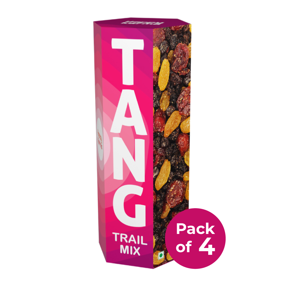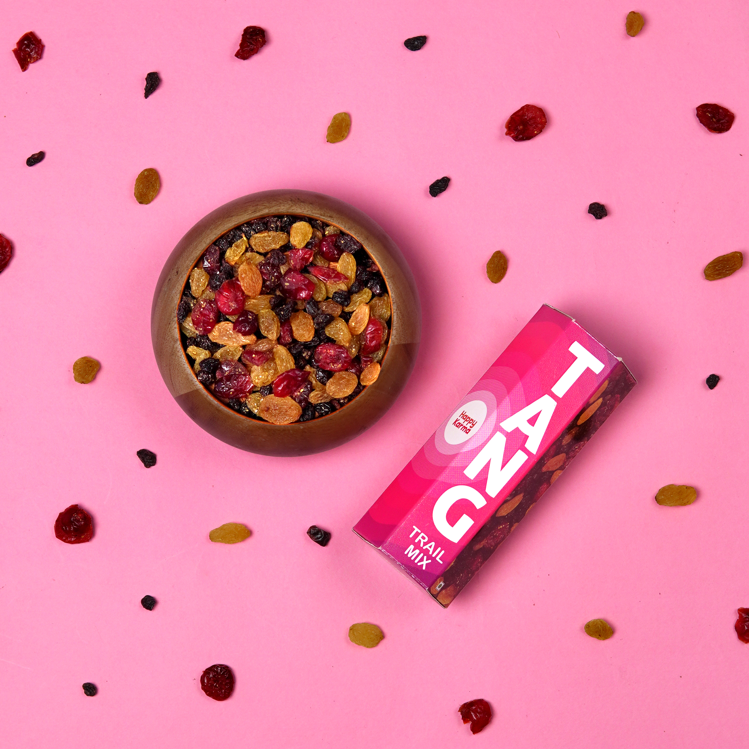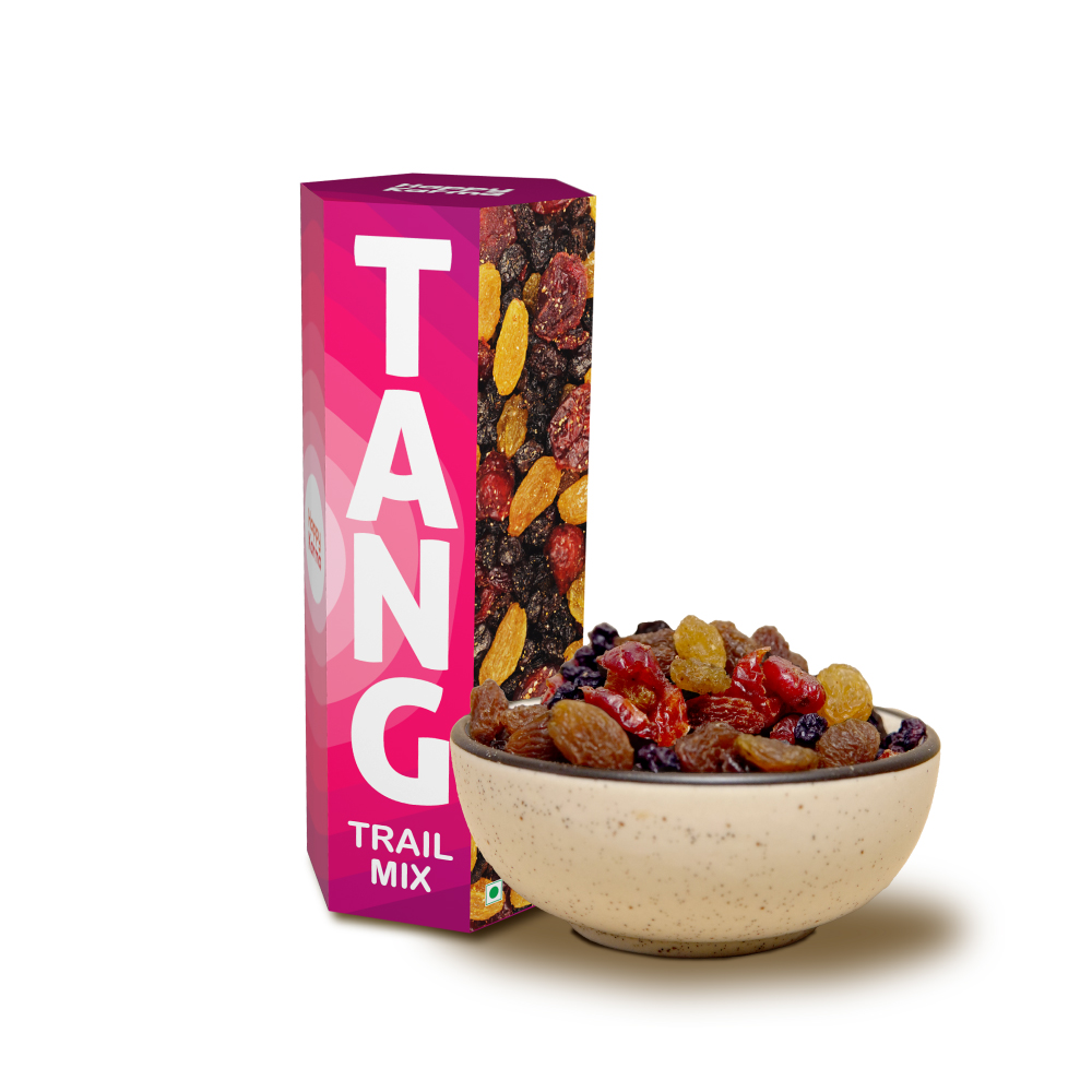 Happy Karma Tang Trail Mix is a tasty and unique blend of natural ingredients that delivers a flavorful and savory snacking experience. This 30g pack of trail mix features a mix of golden raisins, dried cranberries, and black currants, which provide a chewy texture and a sweet-tart flavor. The fruits are coated with sunflower oil and coconut sugar to add a subtle sweetness and nutty flavor. In addition to the traditional rock salt seasoning, this trail mix is also seasoned with chat masala, a classic Indian spice blend consisting of cumin, coriander, dried mango powder, and other aromatic spices. The chat masala adds a tangy and savory flavor to the mix, providing a unique taste sensation that will keep you coming back for more. This snack is perfect for those who enjoy bold and exotic flavors, and is a great source of energy for any time of day.
