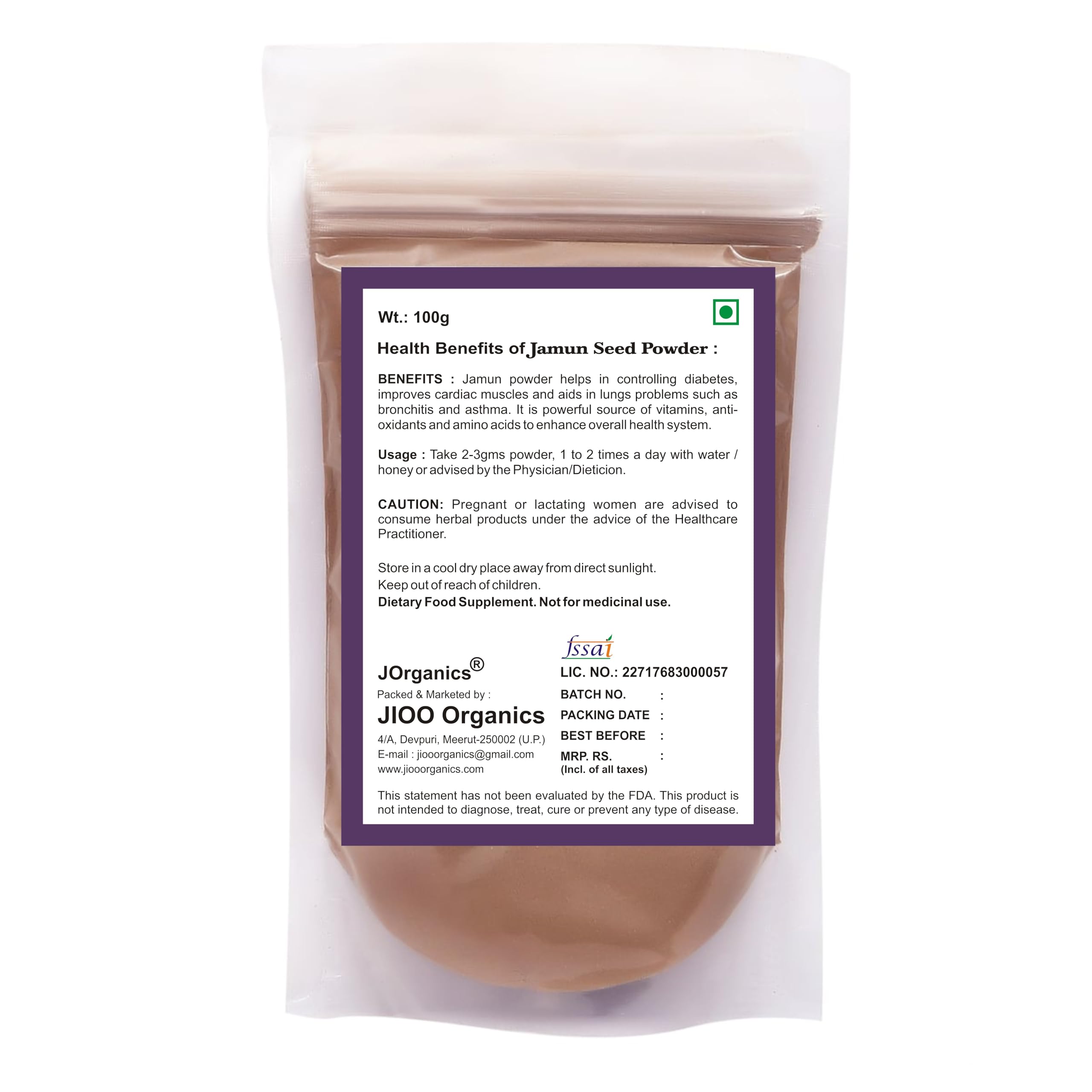 Jamun Seed Guthli Powder. Comes in a re-usable stand-up zipper pouch for convenient storage. It is a good source of vitamin A C and iron. The seeds of jamun are reported to be rich in flavonoids a powerful antioxidant that not only helps in flushing harmful free radicals from the body but also exerts a protective effect on the antioxidant enzymes.