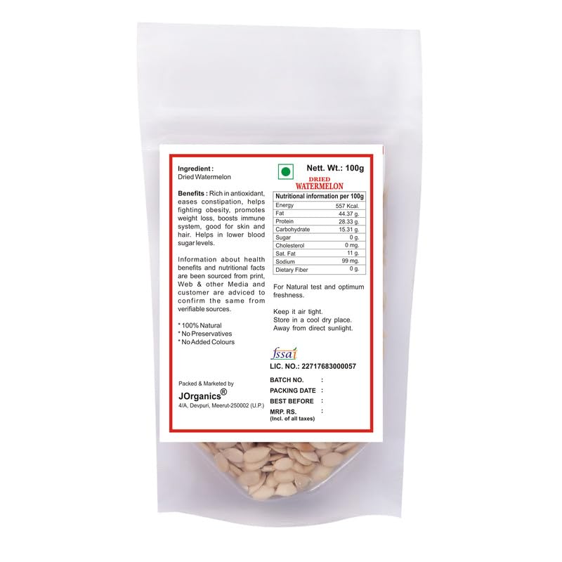 JOrganics Raw Watermelon Seeds for Eating | Tarbooj Beej | Magaj | Pack of 100 g