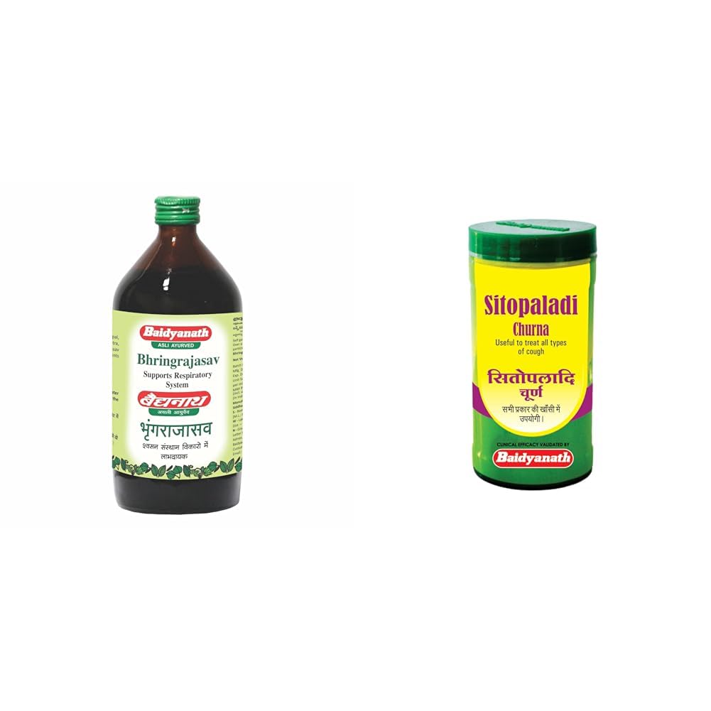 Baidyanath Bhringrajasava 450 ml Syrup |Made with Natural Ayurvedic Ingredients for Hair Liver Cough & Baidyanath Asli Ayurved Sitopaladi Churna | Useful In All Types Of Cough - 60 G