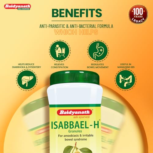 Isabbael (H) Granules is used as an amoebicide intestinal antiseptic antidysenteric astringent. It is helpful in amoebiasis irritable bowel syndrome (IBS) diarrhea amoebic dysentery and giardiasis. It contains Kutaj chhal Amla Ajwain Til Isabgol.