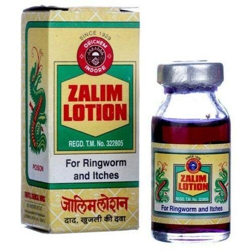 Apply Zalim lotion on Ringworm, Itches, Scabies or any such kind of skin disease with soaking cotton in Zalim Lotion once in a day, the lotion gets dry immediately after applying to the infected area. The cloathes will not get any kind of stains.In order to get rid of long ailment, apply Zalim Lotion for continuous two days and on third day apply Orichem Green Oinment, repeat the process for few days to see the effect.