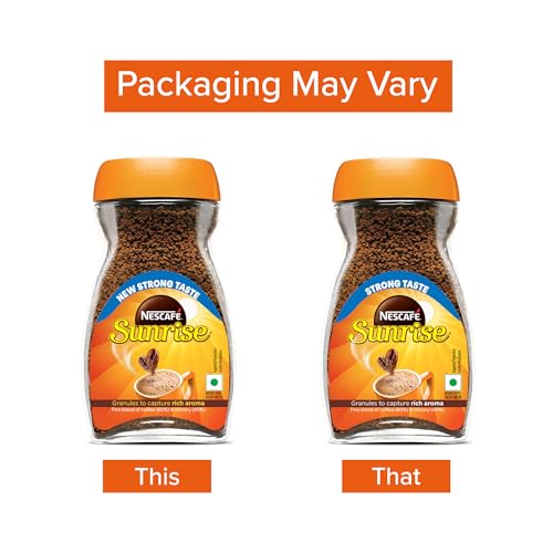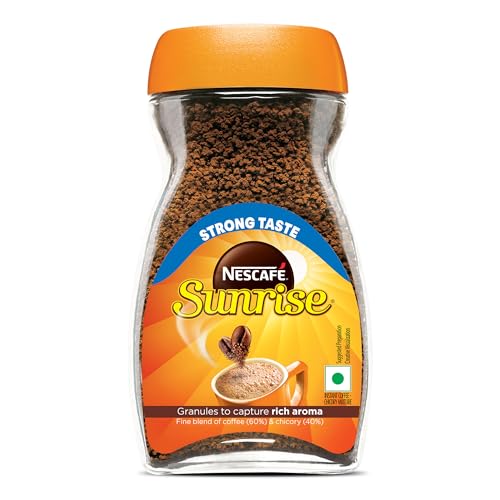 Start your day bright with the NEW STRONG TASTE of NESCAFE SUNRISE! It all begins with handpicked beans from the coffee farms of South India. These coffee beans are SLOW ROASTED to develop the perfect aroma which is retained using our world class expertise and captured in RICH AROMA GRANULES.