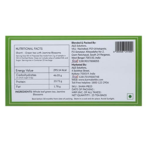 SHANTI- Sencha Green tea with jasmine buds Shanti is an aromatic and flavourful infusion combining the goodness of green tea with select jasmine blossoms making it an exotic yet balanced blend. Sencha green tea has many health benefits- it speeds up and Jasmine is commonly used in aromatherapy for its distinct floral aroma.