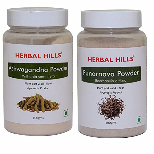 Herbal Hills Ashwagandha Powder and Punarnava Powder - 100 gms each for immunity booster liver and kidney care